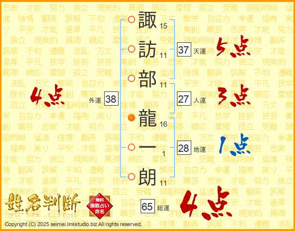 諏訪部龍一朗さんの天運は37画の5点!