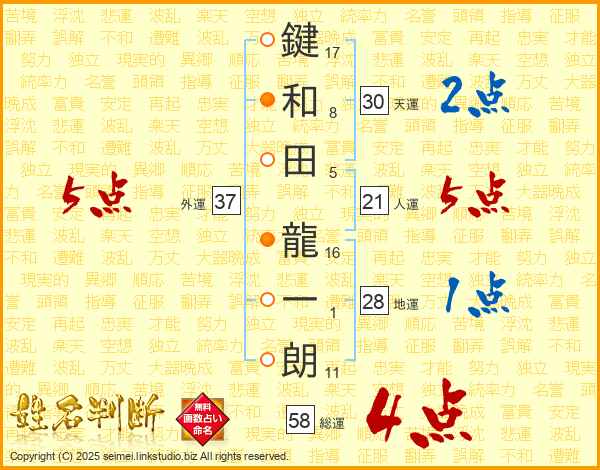 鍵和田龍一朗さんの総運は58画の4点!