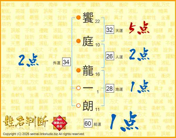 饗庭龍一朗さんの天運は32画の5点!