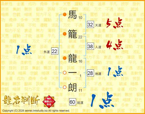 馬籠龍一朗さんの天運は32画の5点!
