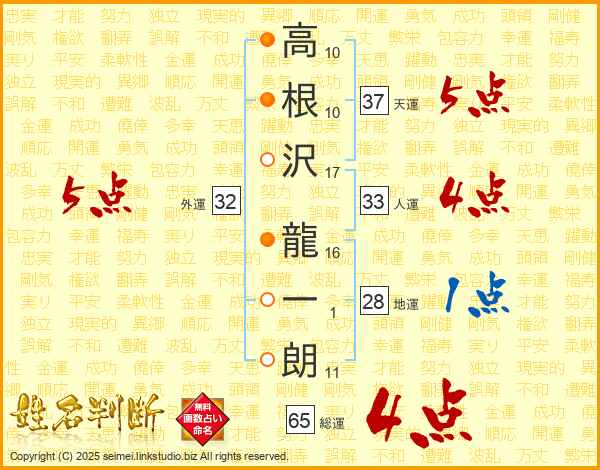 高根沢龍一朗さんの外運は32画の5点!