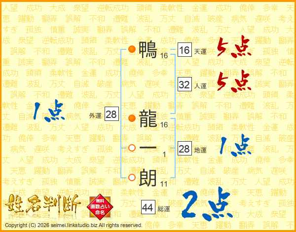鴨龍一朗さんの総運は44画の2点!