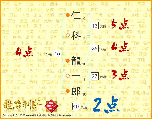仁科龍一郎さんの天運は13画の5点!