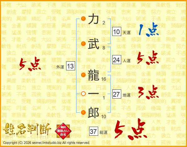 力武龍一郎さんの総運は37画の5点!