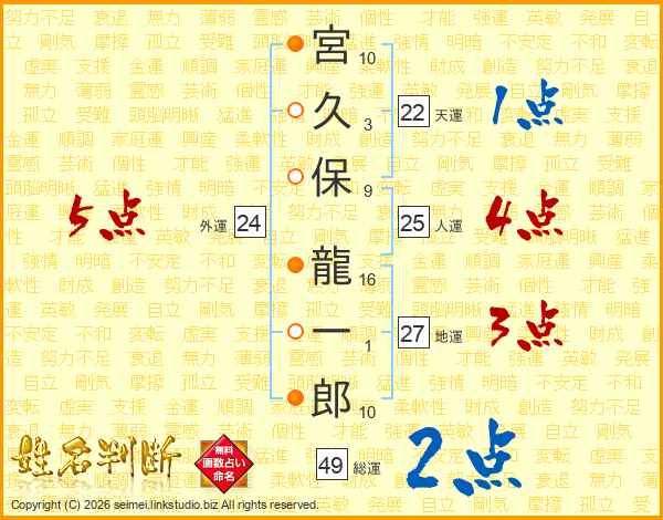 宮久保龍一郎さんの人運は25画の4点!