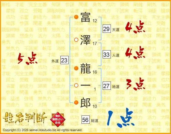 富澤龍一郎さんの人運は33画の4点!
