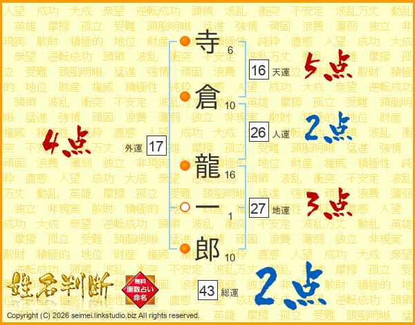 寺倉龍一郎さんの人運は26画の2点!