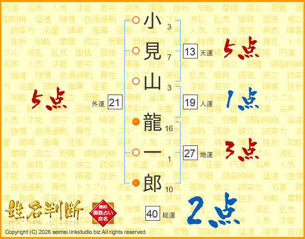 小見山龍一郎さんの総運は40画の2点!