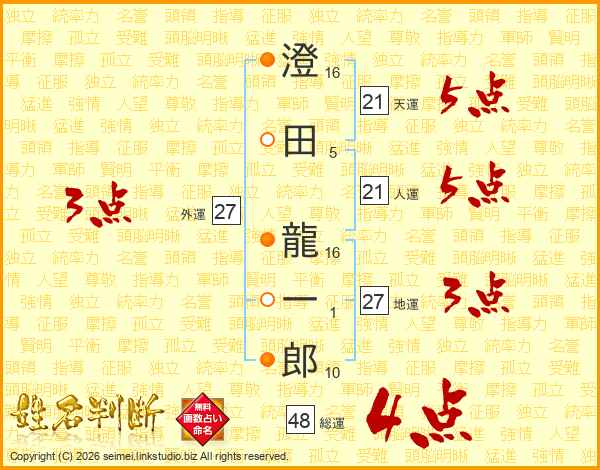 澄田龍一郎さんの総運は48画の4点!