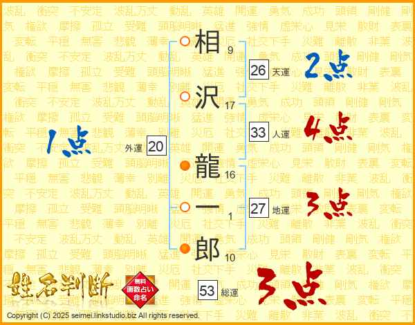 相沢龍一郎さんの総運は53画の3点!