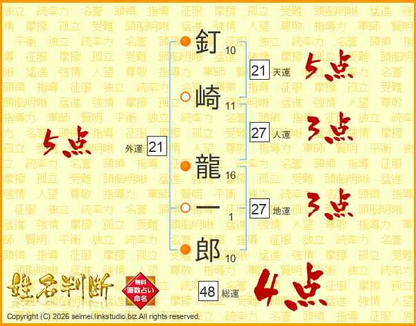 釘崎龍一郎さんの総運は48画の4点!