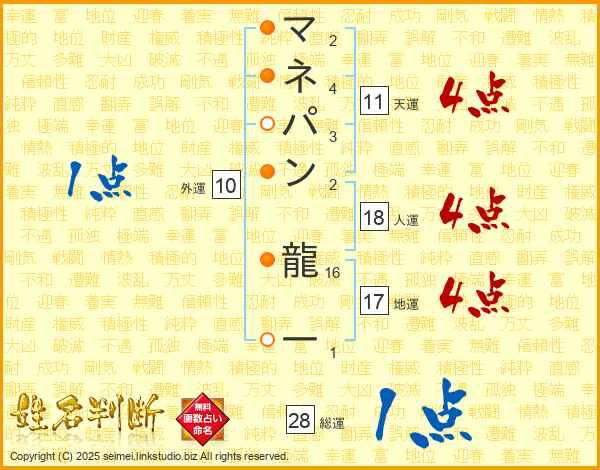 マネパン龍一さんの総運は28画の1点!