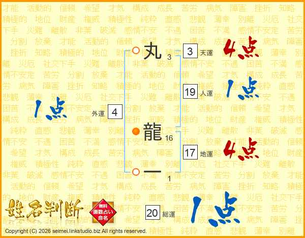 丸龍一さんの総運は20画の1点!