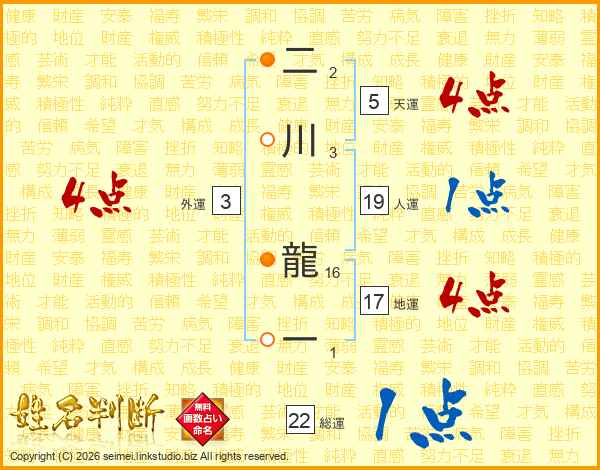 二川龍一さんの総運は22画の1点!