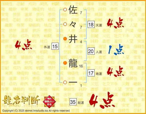 佐々井龍一さんの総運は35画の4点!