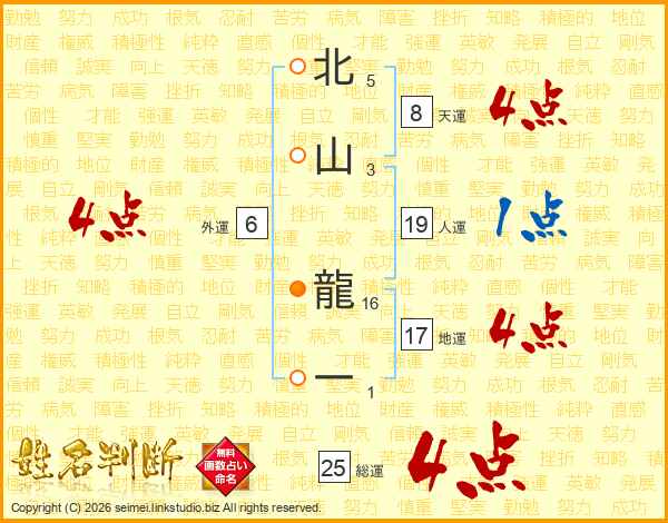 北山龍一さんの総運は25画の4点!