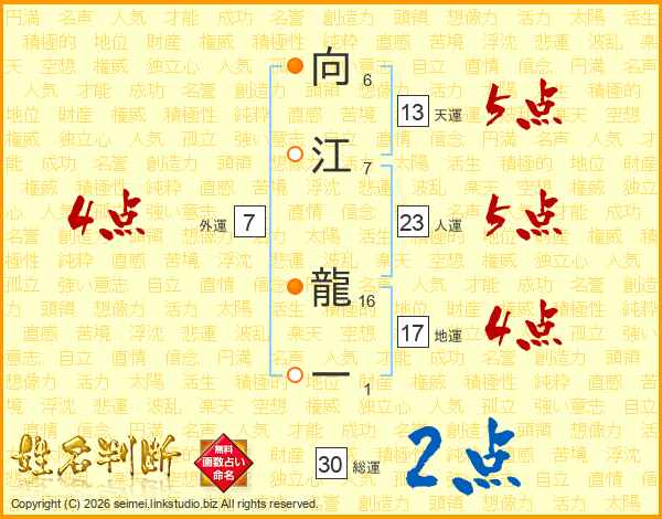向江龍一さんの天運は13画の5点!