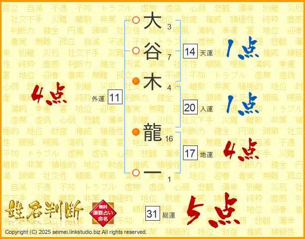 大谷木龍一さんの総運は31画の5点!