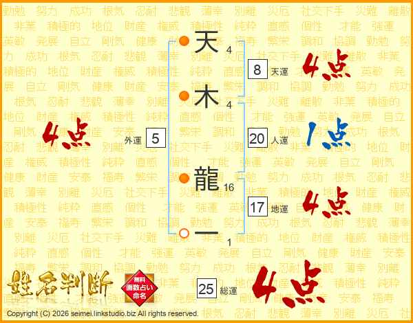 天木龍一さんの総運は25画の4点!