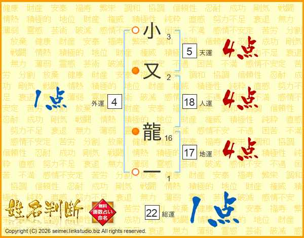 小又龍一さんの総運は22画の1点!