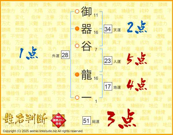 御(11画)器(16画)谷(7画) 龍(16画)一(1画)