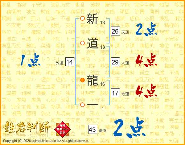 新道龍一さんの天運は26画の2点!