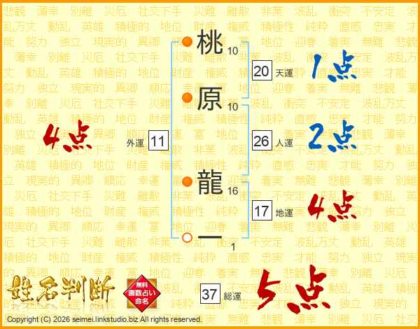 桃原龍一さんの総運は37画の5点!