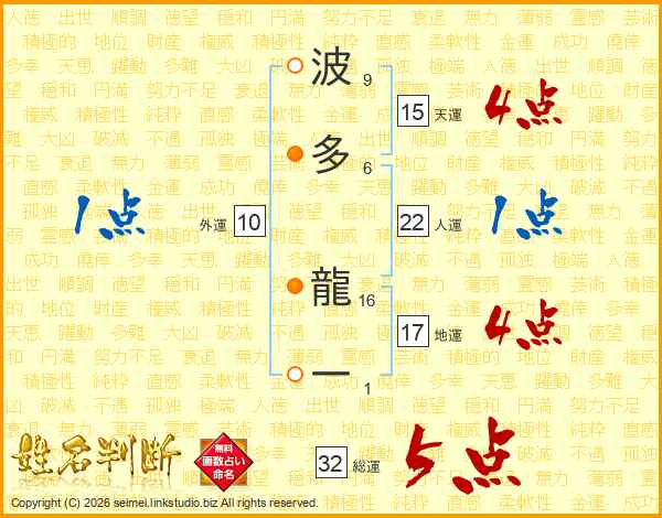 波多龍一さんの総運は32画の5点!