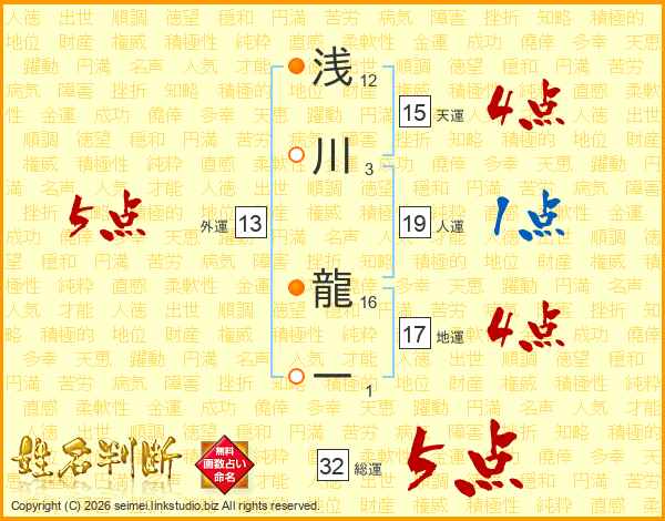 浅川龍一さんの総運は32画の5点!