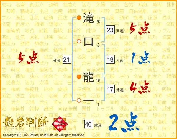 滝口龍一さんの総運は40画の2点!