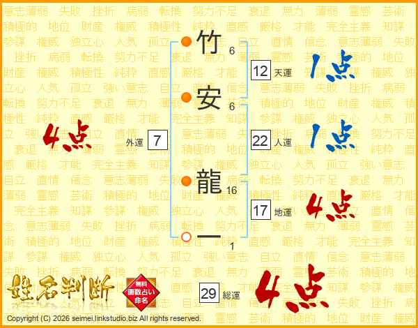 竹安龍一さんの総運は29画の4点!