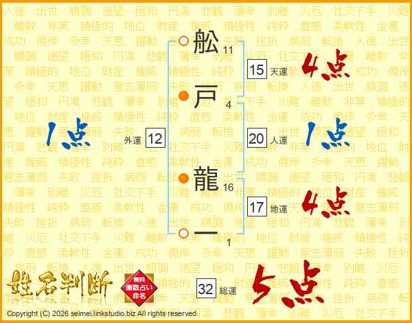 舩戸龍一さんの総運は32画の5点!