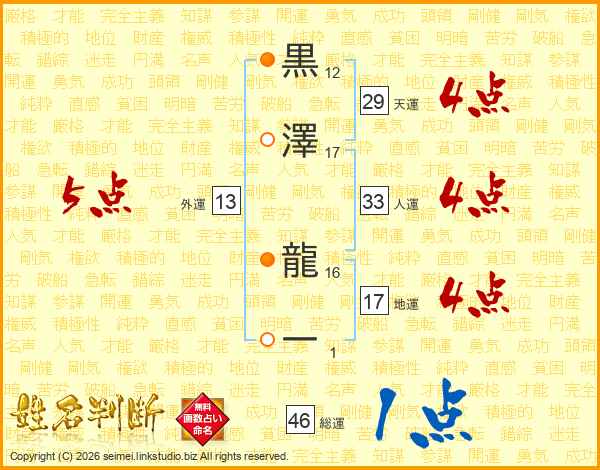 黒澤龍一さんの人運は33画の4点!