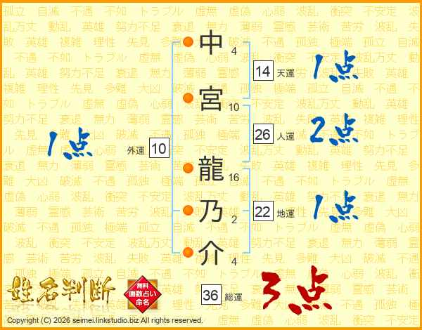 中(4画)宮(10画) 龍(16画)乃(2画)介(4画)