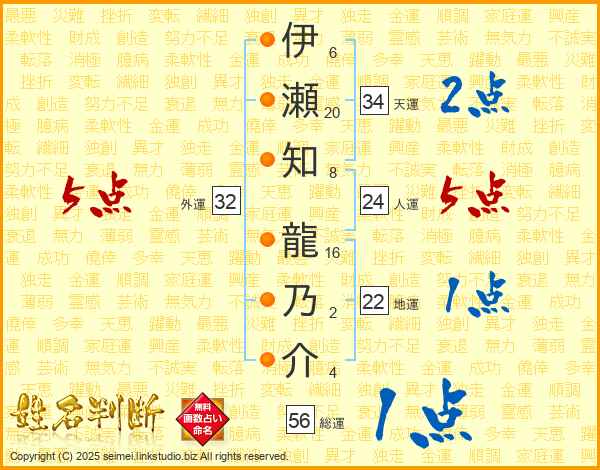 伊瀬知龍乃介さんの総運は56画の1点!