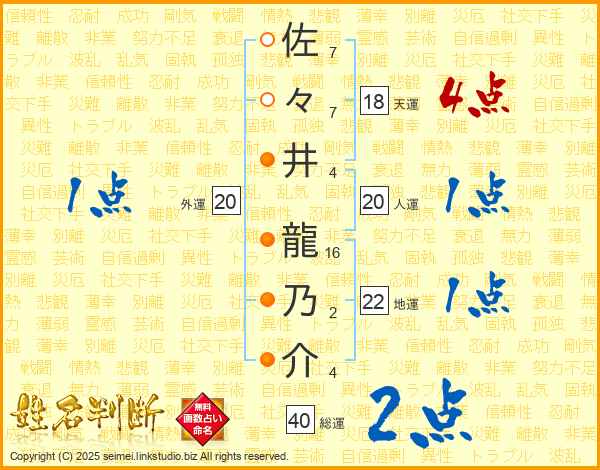 佐々井龍乃介さんの総運は40画の2点!