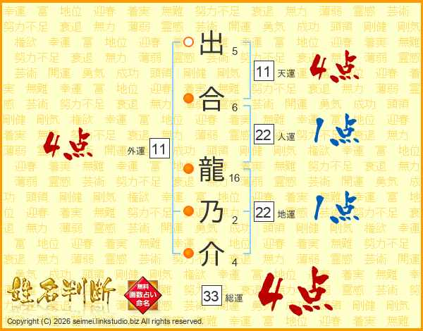 出合龍乃介さんの総運は33画の4点!