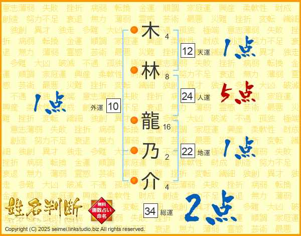 木林龍乃介さんの総運は34画の2点!