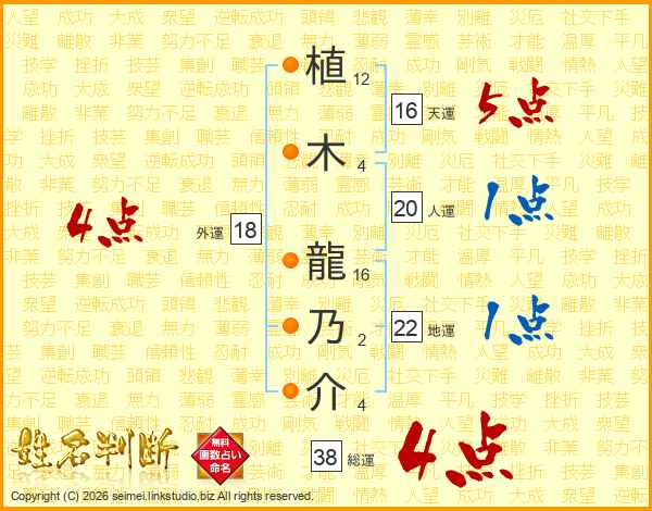 植(12画)木(4画) 龍(16画)乃(2画)介(4画)