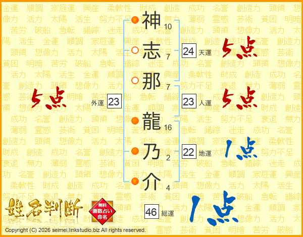 神志那龍乃介さんの総運は46画の1点!