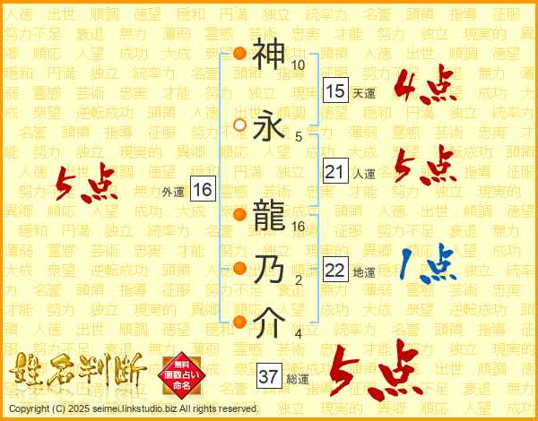 神(10画)永(5画) 龍(16画)乃(2画)介(4画)