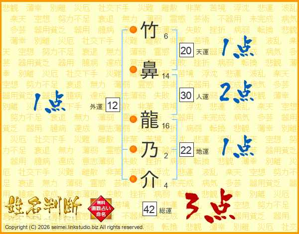 竹鼻龍乃介さんの総運は42画の3点!