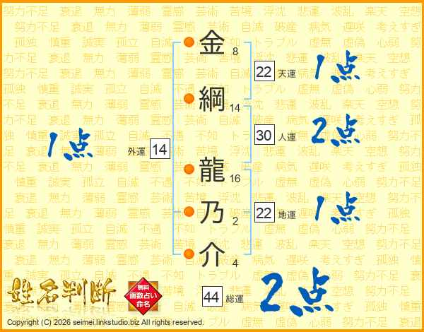 金綱龍乃介さんの総運は44画の2点!