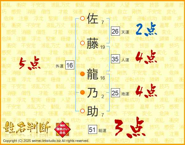 佐藤龍乃助さんの地運は25画の4点!