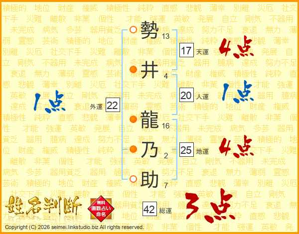 勢井龍乃助さんの天運は17画の4点!