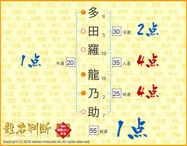 多田羅龍乃助さんの天運は30画の2点!