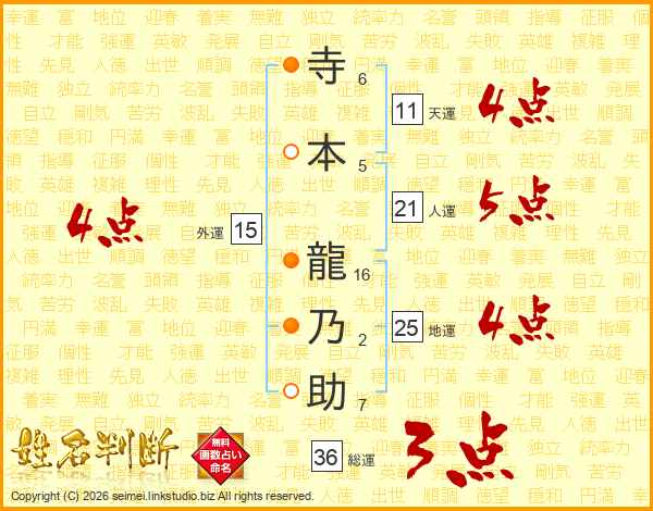 寺本龍乃助さんの総運は36画の3点!