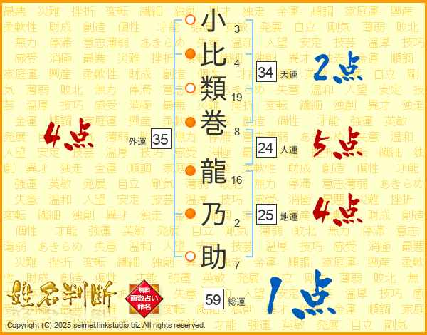小(3画)比(4画)類(19画)巻(8画) 龍(16画)乃(2画)助(7画)