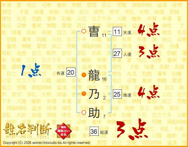 曺龍乃助さんの人運は27画の3点!