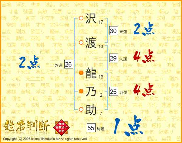 沢渡龍乃助さんの総運は55画の1点!